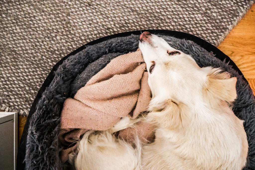 Leia har fått sin säng till kontoret så är nu mycket mer chill och hemma här. Skönt. <3