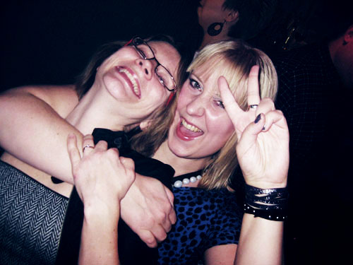 Älska vänner. Älska att dricka vin med vänner. Älska att dricka vin och dansa med vänner. Älska att dricka vin, dansa och få skum i håret med vänner (”snö” på dansgolvet i form av skumpartyskum).