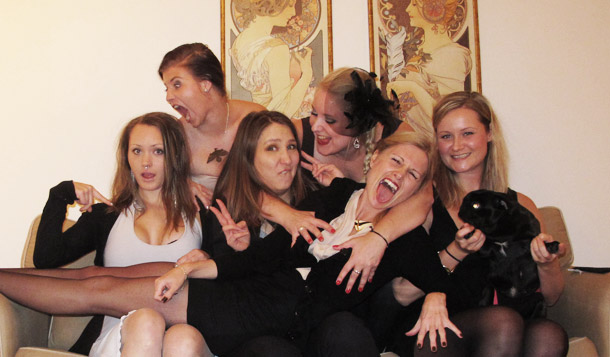 Ett sånt där härligt dysfunktionellt klassfoto. Erica, Fine, Hanna, jag, Mia och Eva. Och Nessla så klart. Och så battlade vi på twitter med killarna om vem som hade det bäst (det var ju vi så klart).