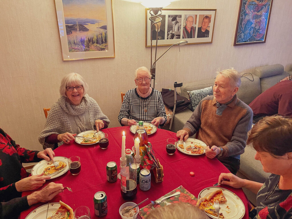 På annandagen körde jag mot stan ungefär samtidigt som solen gick ner. Siktet var inställt på traditionell annandagspizza hos min morbror med släkten. Kanske den bästa idén vi någonsin kommit på. Så mysigt att hänga hela stora skocken och du kan ju ana vem som blev showens mittpunkt – Vilmer så klart.