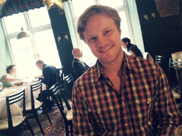 Ekologiskt och närodlat. Till huvudrätt åt jag rostbiff med ”ljummen vårskottsallad med grön sparris från Jylland, kålrabbi, nypotatis, ramslöks-emulsion och krutonger.” Nomnom.