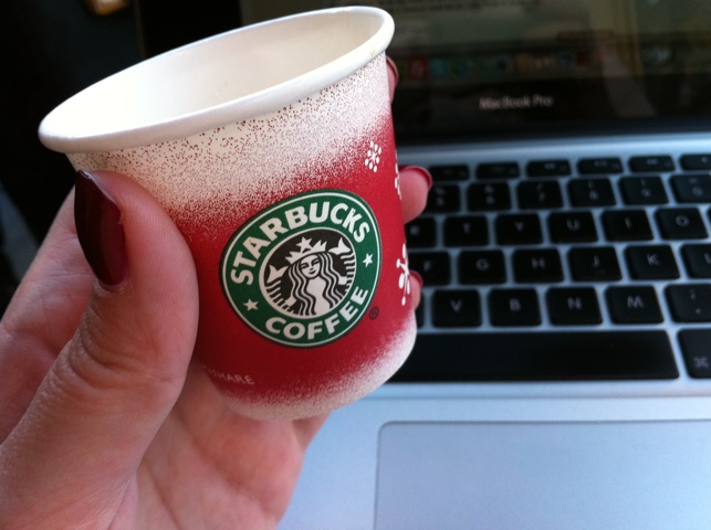 Sitter på Starbucks i West Village och har precis fått ett smakprov av deras helt nya Eggnog Latte med vispgrädde. I'm in love. Min vanilla latte har definitivt fått konkurrens.