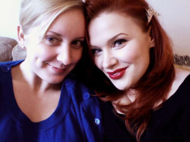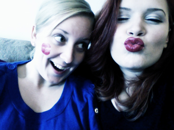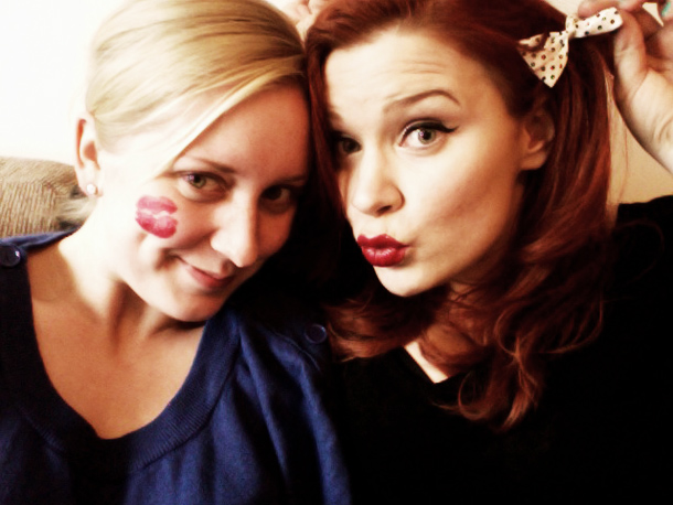 Idag hänger jag hos Karin. Hon sminkar sig och är himla piffig och jag är helt osminkad och tröttare än döden (Note to self; sov mer än fyra timmar). Hon pussar på mig och vi lyssnar på Miss Li. Fin dag.
