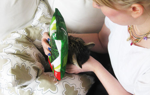 Lillskruttan moppsade upp sig mot vårens första humla och fick för besväret något som liknar påssjuka på ena sidan huvudet. Stackars liten! Även ena tassen är alldeles svullen. Och hon slickar och tvättar och fixar, och det ser alldeles för smålustigt ut. Jag är en dålig matte som inte kan låta bli att dra på smilbanden.