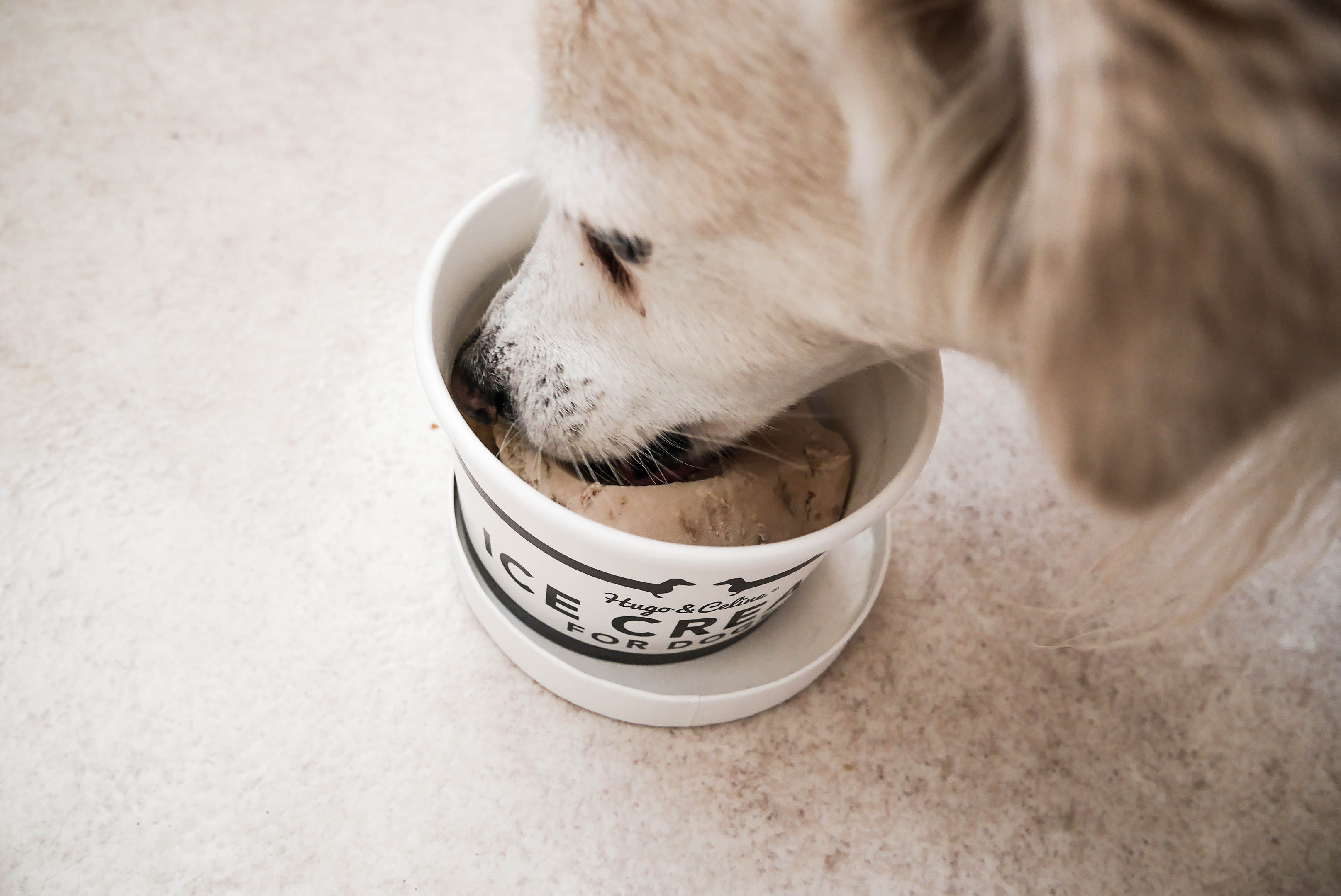Väl ute vid glassbilen visade det sig att de även sålde glass för hundar från Hugo & Celine och som den vovvemamma jag är så var jag ju tvungen att skämma bort Leia. Och jädrar vad hon älskade den! Hon åt nästan upp kartongen, så ivrig var hon att få i sig varenda litet uns av leverglassen. Så – helt klart en hit hos denna lilla grekiska.