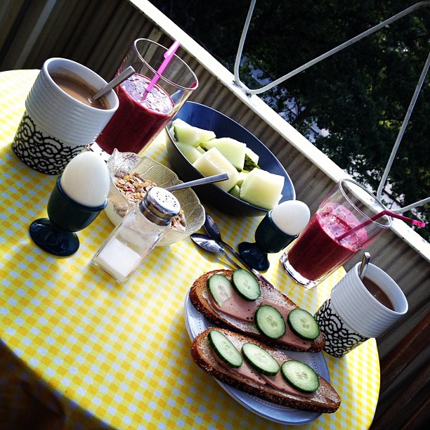 Jon kom över och vi bakade bullar. Och så var det en sån där perfekt morgon för frukost på balkongen.
