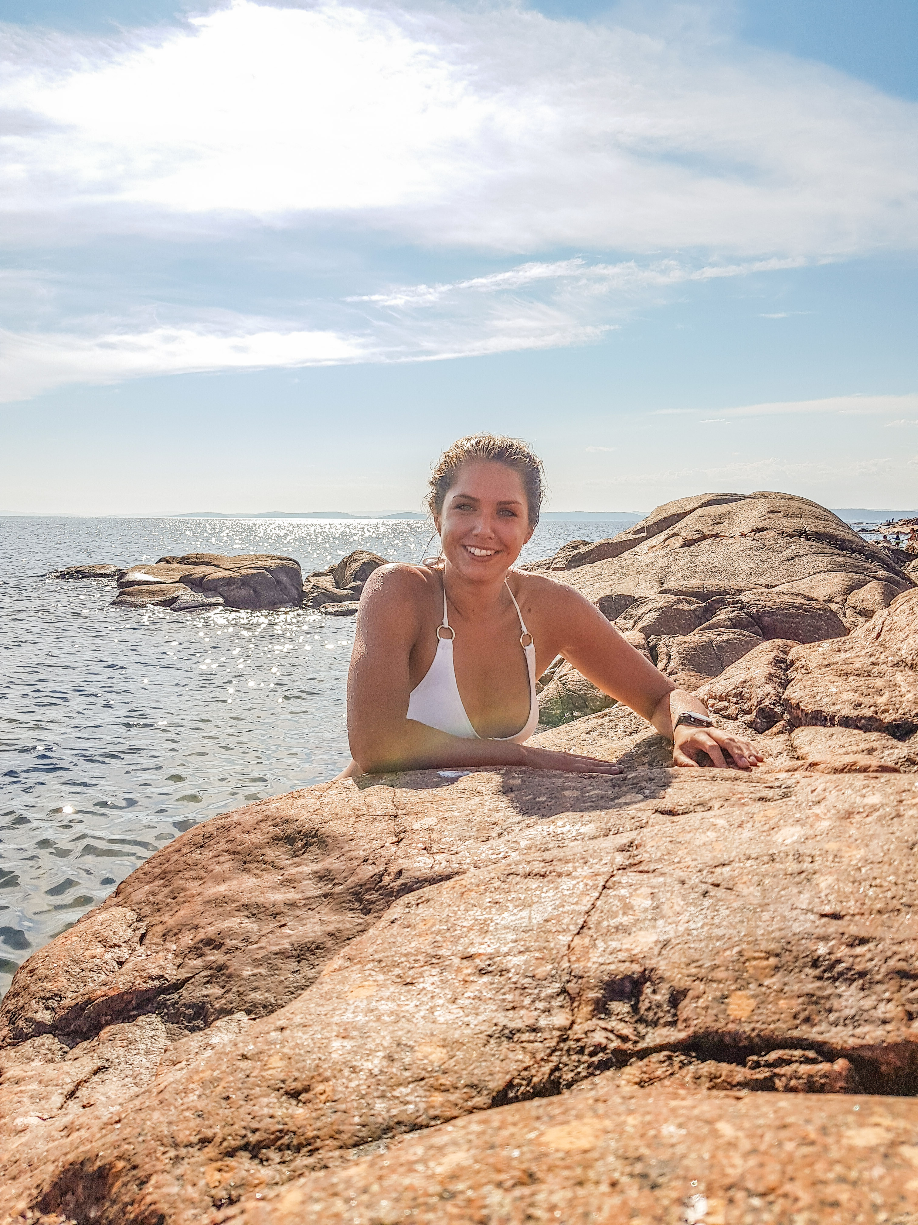 På söndagen gjorde vi inte många knop men på kvällen gick jag och Sara upp till Gryssjön, som ligger 10 minuters promenad från torpet, och tog ett dopp.