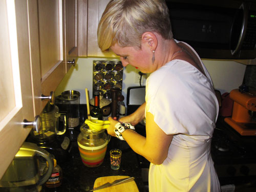 Lina hade gjort egen ingefära-lime-honungsvodka. Himla gott faktiskt.