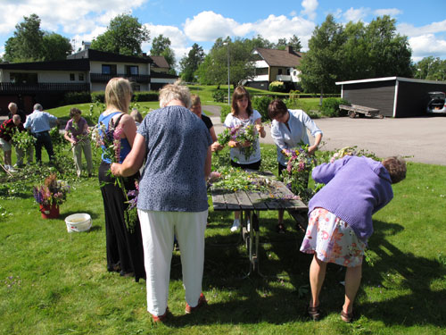 Hela byn hjälptes åt att klä midsommarstången. Så mycket dans blev det dock inte.