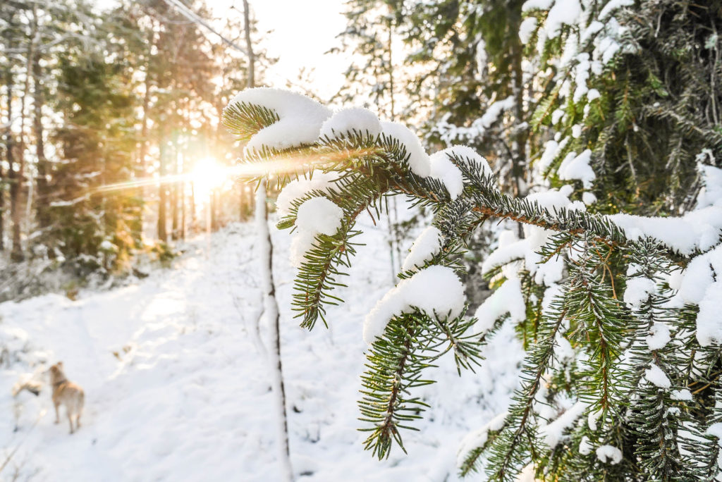 Idag är det molnigt men igår sken solen genom glesa grankvistar. Leia kom dock hem med halva snötäcket som bildat snöbollar som fastnat i hennes päls och tassar. Man får stanna ungefär var hundrade meter för att peta loss snö och is som gör ont i tassarna när hon går. Men ÅH så lycklig hon blir när hon får skutta loss sedan! Greken som älskar snö. <3