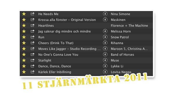När jag inledde ”11 Stjärnmärkta 11”, vad som skulle bli en spektakulär följetong, hade jag höga ambitioner. De föll platt rätt omgående. Främst för att jag är en sådan där person som hittar en artist/spellista som jag gillar och sedan lyssnar jag sönder den listan tills jag kräks på låtarna. Ungefär så. Och det gör ju att utrymmet för ny musik blir rätt begränsat.