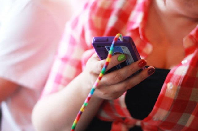 Rosita hade det färggladaste mobilheadsetet.