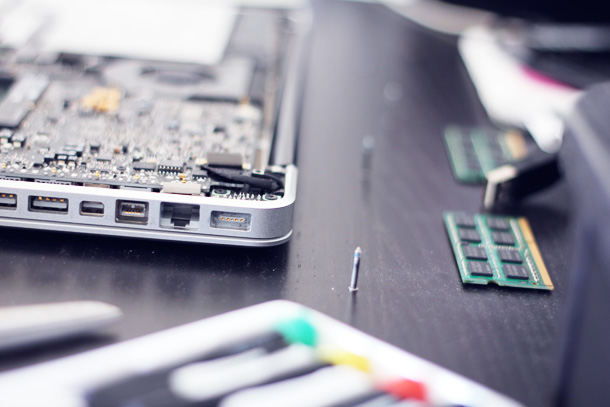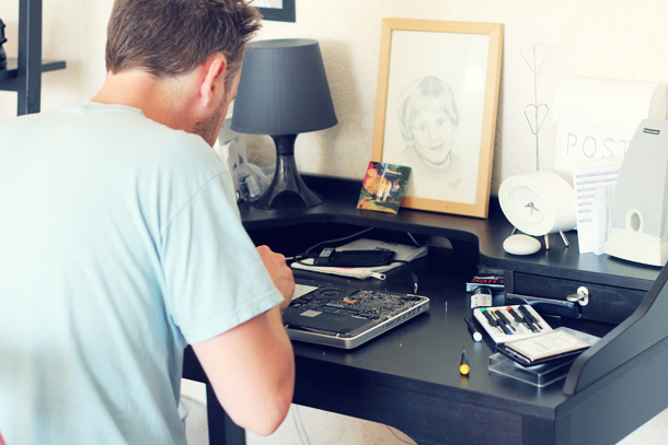 PS. Vet ni exakt hur mycket småpill det finns i en dator som man kan ha sönder hur lätt som helst? Jättemycket. Och av någon anledning får jag en tvångstanke om att ta en skruvmejsel, köra ner i hela härligheten och veva runt i småpillet. Mycket sunt sinne.