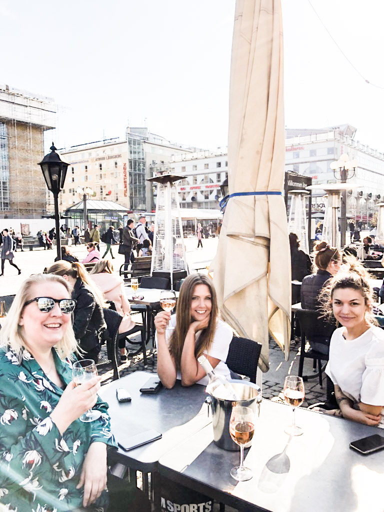 Sedan ställde sig stjärnorna på linje och jag fick lyxen att avnjuta vårens första glas rosévin på en av Medborgarplatsens uteserveringar med Sara, Emilia (och Selma) och Sanna. Den här uteserveringspremiären, den är liksom så talande för våren, för hur människor kommer ur sina skal och ur sina hem och bara inhalerar den där solen som man knappt sett på ett halvår. Så det gjorde vi igår. Inhalerade sol.