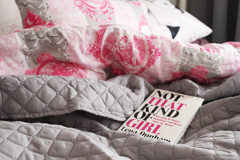 Så, förra helgen när mor och syster var här och hälsade på körde vi sängupdate. En ny (till) bäddmadrass, nytt täcke, ett gäng nya kuddar och ett överkast. Ahhhhhhhh. Alltså, skillnaden är obeskrivlig. Det är fluffigt, varmt, mysigt, ett hav av gos! Och mina sängkläder matchar boken jag just nu läser – ”Not That Kind of Girl” av Lena Dunham (ÄLSKAR denna kvinna). Det är ju liksom meant to be.